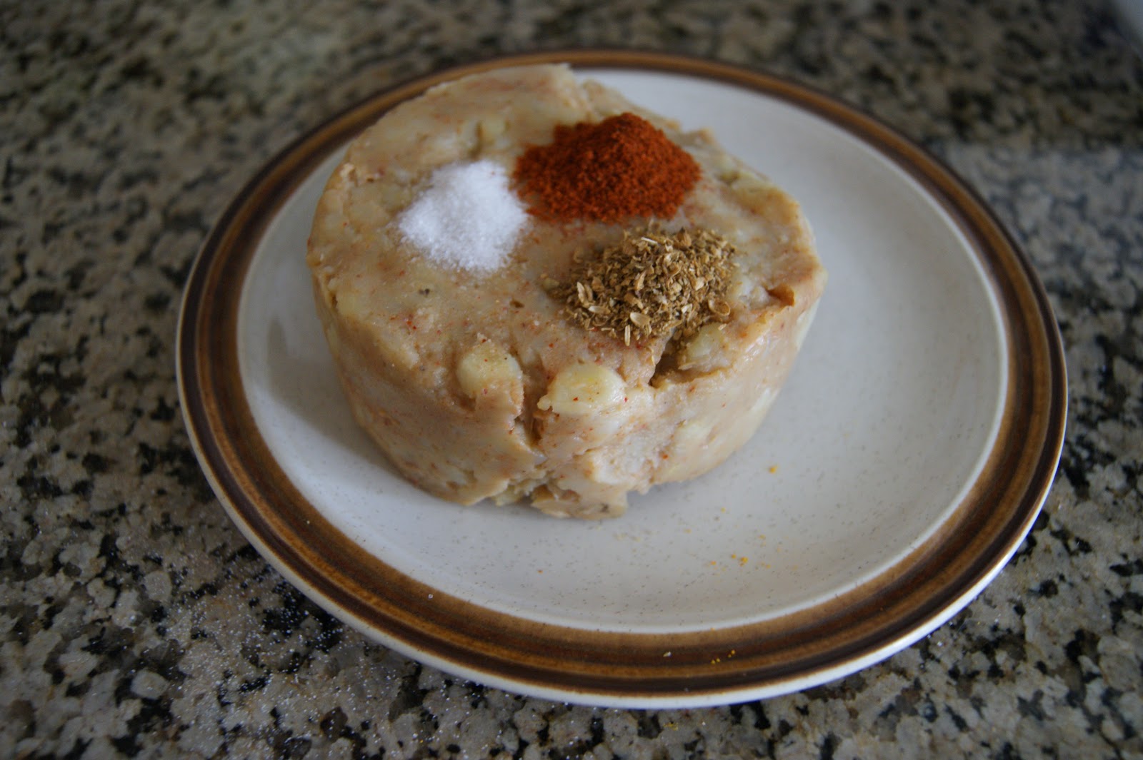 - Add salt, red chili and coriander powder and mix them in a dough of potato and banana.